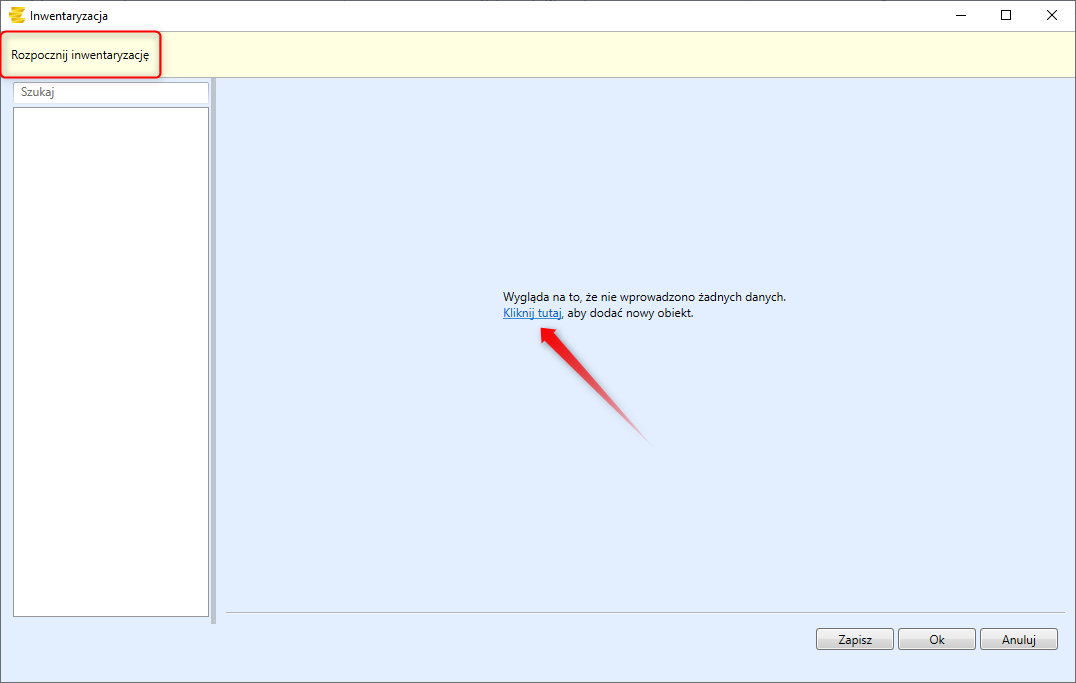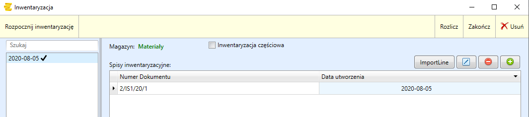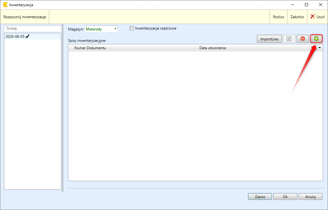 Spis inwentaryzacyjny należy dodać poprzez wybór przycisku