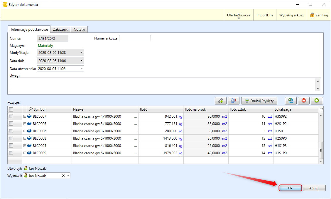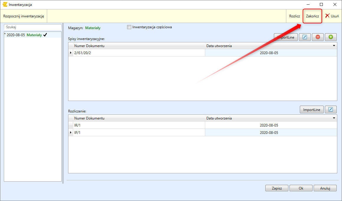 Po wprowadzeniu aktualnych stanów magazynowych, należy wybrać przycisk OK.
