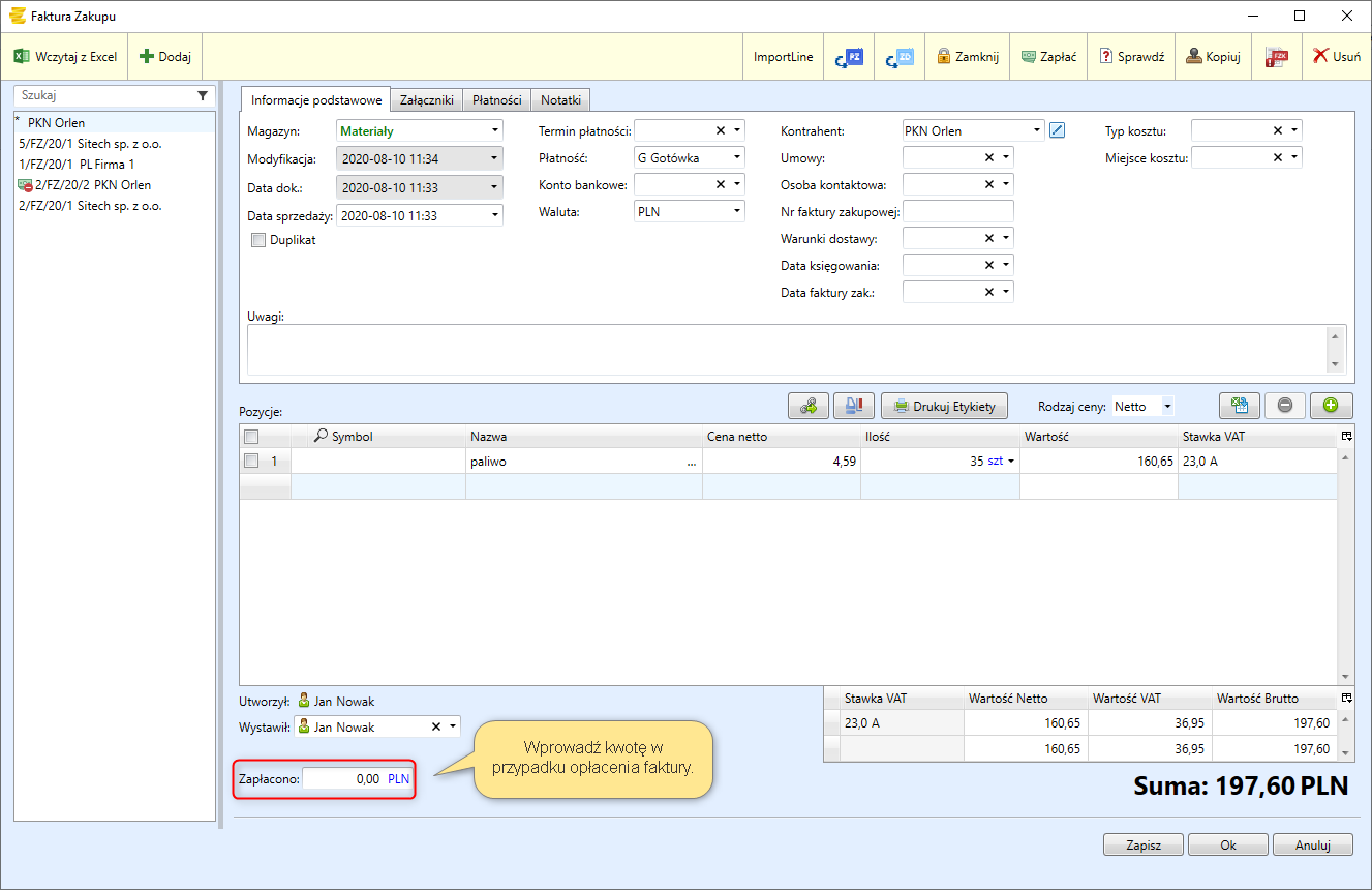 Wprowadzenie Faktury Zakupu - bazując na dokumencie Przyjęcie Zewnętrzne