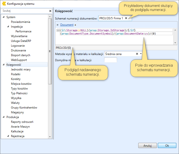 Numeracja - Pozwala w zaawansowany sposób definiować sposób numeracji dokumentu. Jeśli nie zostanie zdefiniowana zostanie zastosowana numeracja dla grupy dokumentów.