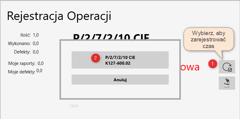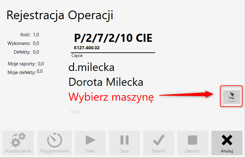 Jeżeli do operacji została przypisana, więcej niż jedna maszyna, system przywoła o wskazanie konkretnej maszyny.