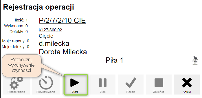 Pracownik może rozpocząć wykonywanie czynności przez daną maszynę.