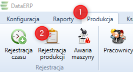 Przykładowo jedną z przyczyn zarejestrowania operacji z poziomu programu jest brak rejestracji operacji z poziomu operatora. Użytkownik uprawniony do wykonania tego działania powinien w pierwszej kolejności otworzyć zakładkę menu: Produkcja -> Rejestracja produkcji.