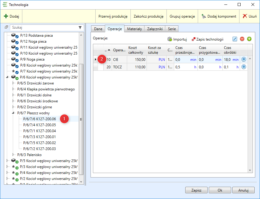 W systemie to działanie zostanie zarejestrowane w zakładce Produkcja ->Technologie -> Operacje -> Rejestracja. Wybierając zakładkę Zarejestrowane użytkownik dostanie informację o czasie rozpoczęcia i zakończenia operacji, pracowniku który ją wykonał oraz wykonanej ilości, a także czy w trakcie wykonywania czynności wystąpiły braki.