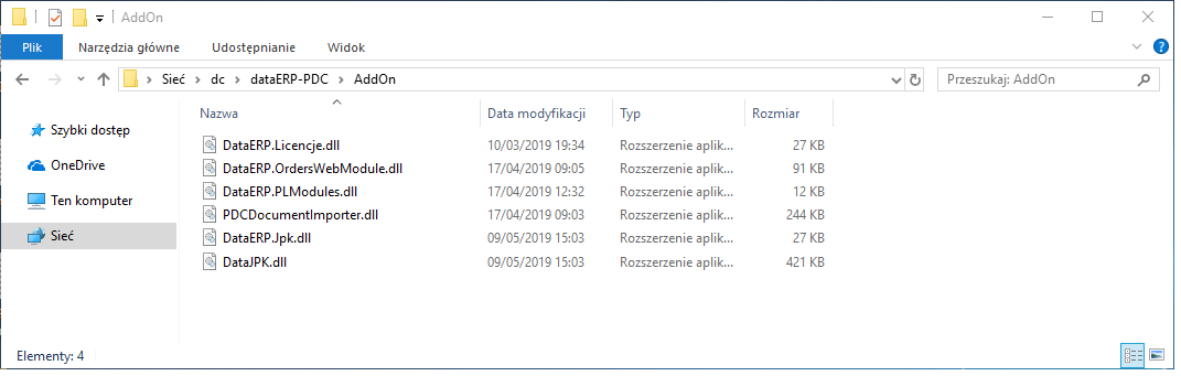 Wejść do folderu AddOn znajdującego się w folderze głównym plików DataERP.