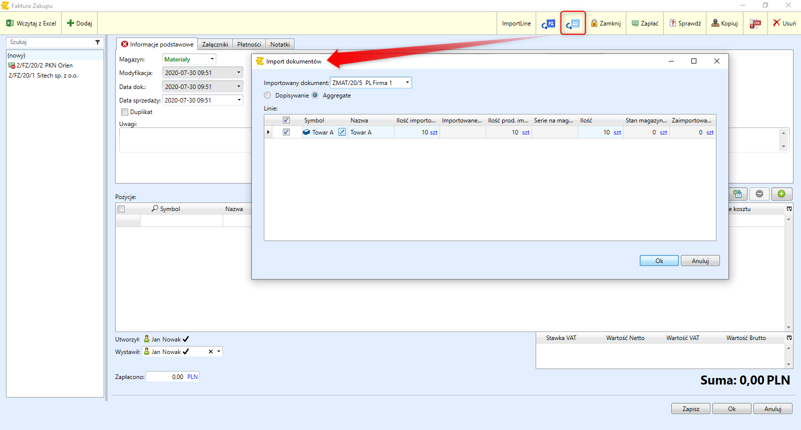 - Inaczej przedstawia się sytuacja przy działaniu związanym z importowanymi dokumentami- stawka VAT podczytywana jest z dokumentu pierwotnego.